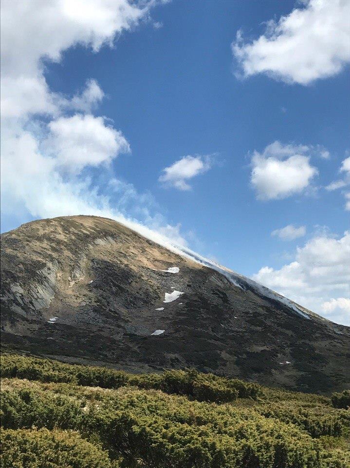 Про пожежу на найвищій українській вершині написав користувач facebook Володимир Мельник. Чоловік також опублікував фото та відео з місця події.