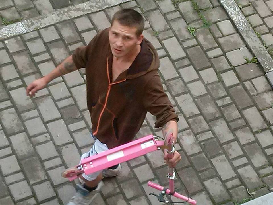 Дзвонили (ред. — молоді хлопці) в домофон, представляючись людьми із газконтори, я їм не відкрила (яка газконтора в неділю?!), та вирішила подивитися у вікно. Побачила, що вони зайшли у сусідній під’їзд і вийшли через декілька хвилин вже із самокатом. От я і зробила для них фотосесію. Прошу зробити цих людей відомими! Самокат він залишив, коли побачив, що я фотографую. Я його повернула у під’їзд, — розповіла пані Надія.