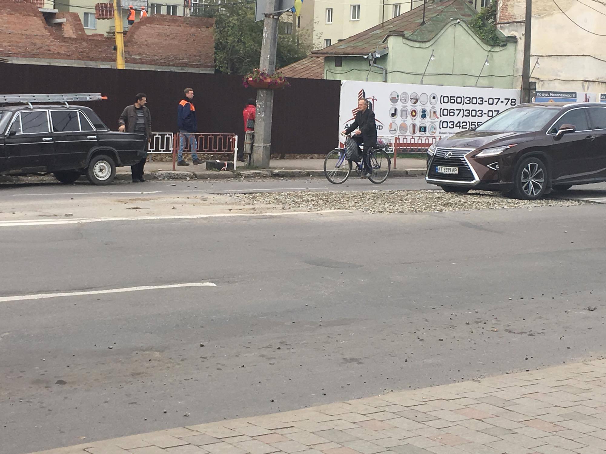 Кілька днів вулицю Незалежності заливало водою. Величезна вирва утворилася просто на центральній дорозі поруч зупинки громадського транспорту. Наразі яму засипали гравієм, до кінця тижня обіцяють заасфальтувати.