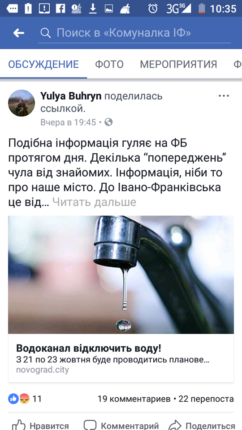 Як з’ясували журналісти МІСТА, через недостовірне повідомлення у соціальній мережі, днями до диспетчерів підприємства телефонувало чимало франківців для уточнення цієї інформації. У КП “Івано-Франківськводоекотехпром” зазначають, що ніхто не давав подібних оголошень.