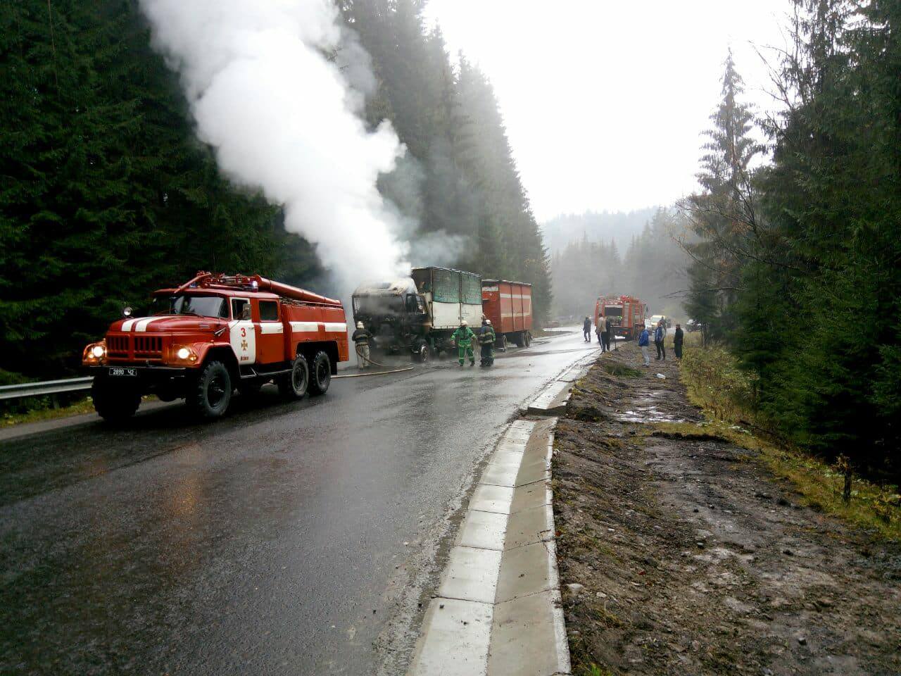 Сьогодні, 27 жовтня, на Яблуницькому перевалі спалахнув автомобіль ДАФ. Пожежу довелося ліквідовувати рятувальникам.