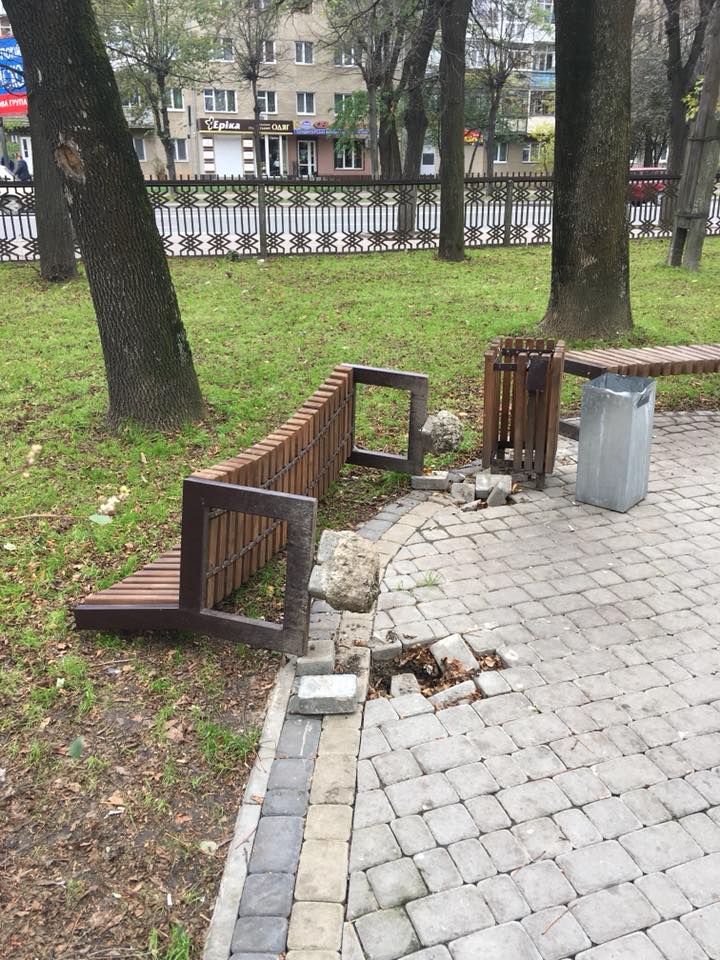 Вандали знищили нові вуличні меблі у міському сквері. ФОТО