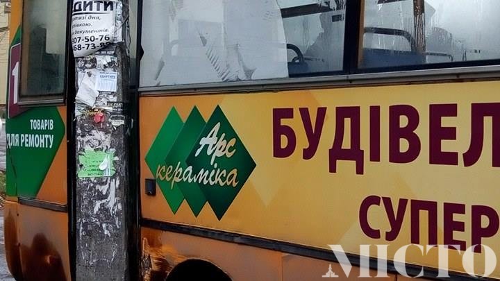 У Франківську маршрутка в’їхала в електроопору. ФОТО