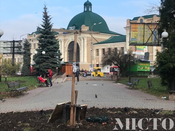 “Хрест тверезості” біля залізничного вокзалу зламаний. ФОТО