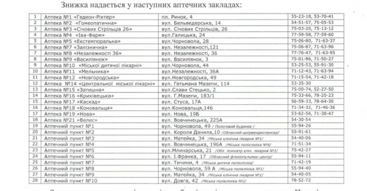 Перелік аптек, у яких власники “картки франківця” отримають знижку: