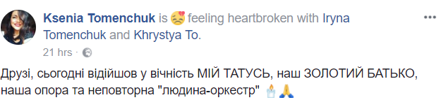 Про це у мережі  повідомила  його донька Ксенія Томенчук, пише “Галицький кореспондент”.