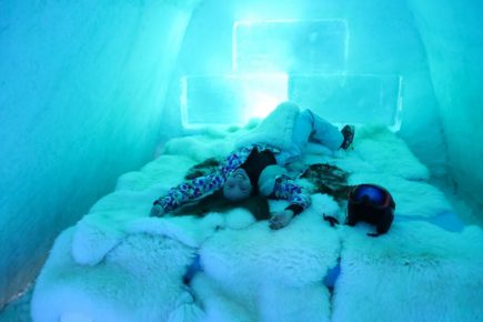 Оригінальні фото поширюють відвідувачі першого в Україні готелю з льоду.