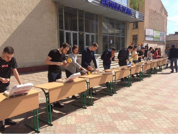 У кожному етапі взяли участь 10 студентів, восьмеро хлопців та двоє дівчат. Кожен з’їв по одній піці, – мовить Михайло. – Піцу нам привезли наші партнери, працівники однієї з місцевих піцерій.