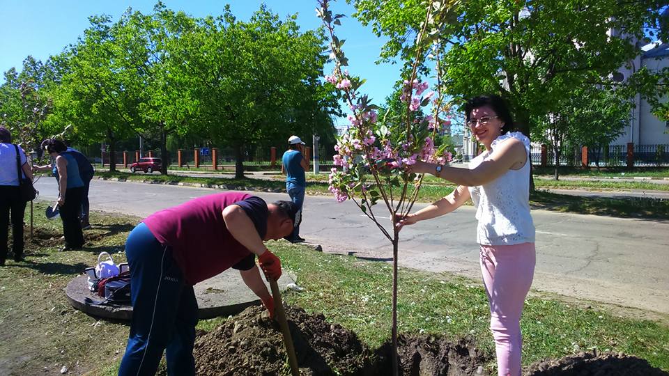 Мешканці запаслися лопатами, рукавицями та спільними зусиллями висадили алею сакур із 27-ми дерев на бульварі Незалежності. Ще дві японські вишні цвістимуть на площі Героїв та одна на вулиці Франка, біля будівлі виконавчого комітету.