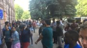 На протест зібралися іноземці різних національностей. Вони вирушили в лекційний зал університету писати колективну заяву-скаргу на МОЗ. Хочуть, аби їм пояснили причину змін на “Кроці” і анулювали питання.