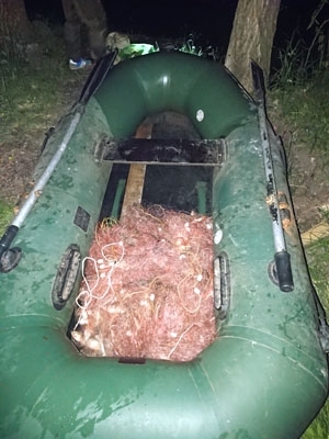 Матеріали справи направлено до суду, який визначатиме браконьєру розмір штрафу (від 340 грн до 680 грн), а ще разом із сіткою може конфіскувати і гумового човна.