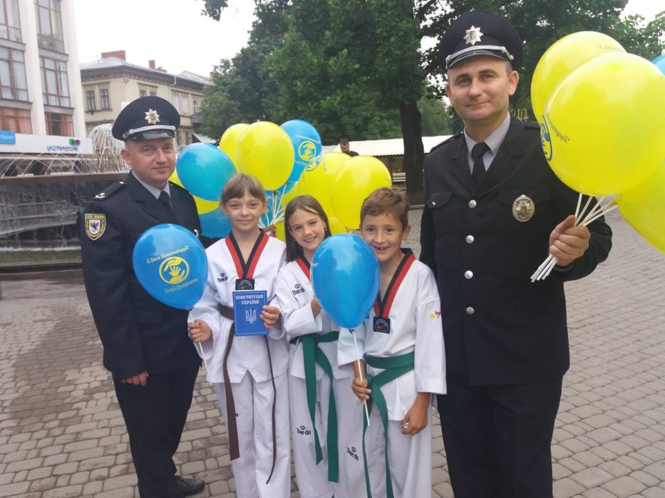 На Вічевому майдані в Івано-Франківську працівники ювенальної превенції привітали юних прикарпатців з Днем Конституції України. Школярі отримали у подарунок від поліцейських друковане видання основного закону нашої держави, а малята – повітряні кульки з логотипом ювенальної превенції та святковим вітанням, – інформує Ювенальна Превенція Прикарпаття.