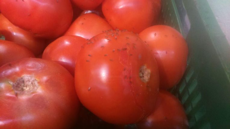 Віталій Бабак в соціальних мережах оприлюднив фото овочів, які стояли на вітрині та “чекали свого покупця”. На світлинах чітко видно, як серед зіпсованих та гнилих овочів, що знаходились серед інших продуктів, завелися комахи та плісінь.