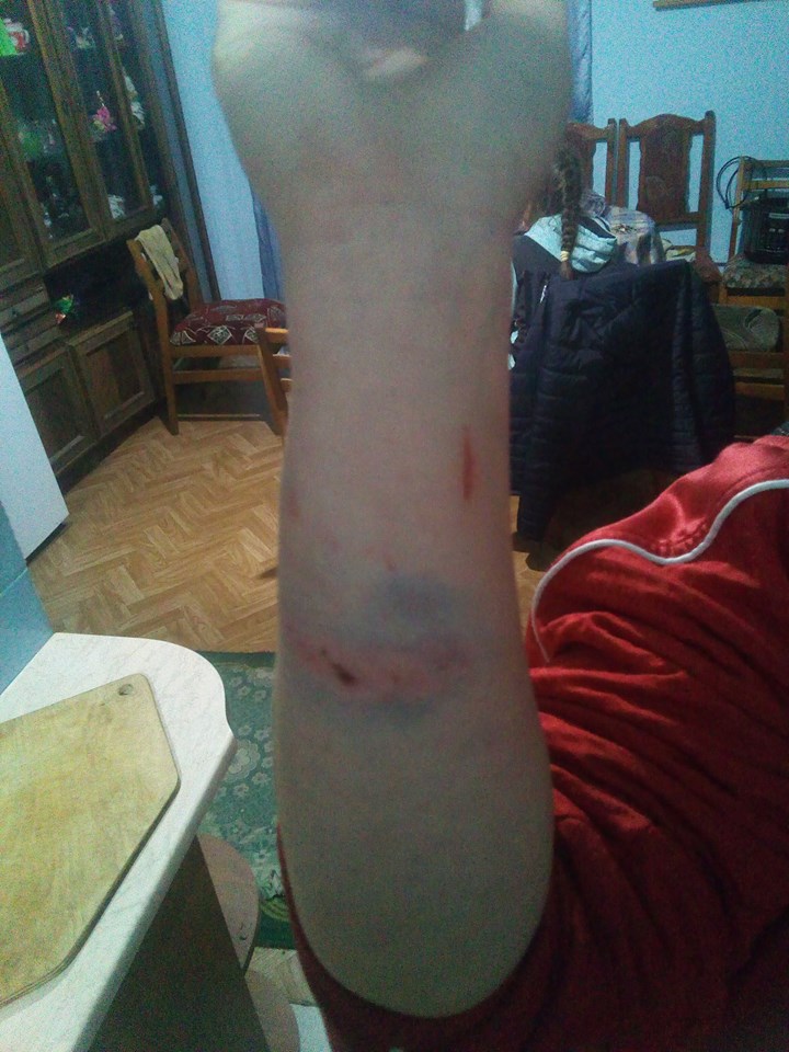 В той час пані Фіцай разом зі своїм спільником перебігла на дорогу і під час руху почала бити об скло, по її словам намагаючись їх зупинити. В результаті скло розбите на пасажирському місці де сидів мій брат, на якого посипалися осколки. Хочу уточнити, що за рулем був мій батько, і те, що вона стверджує, це тільки спроба викрутитися з ситуації, – розповідає пані Наталя.