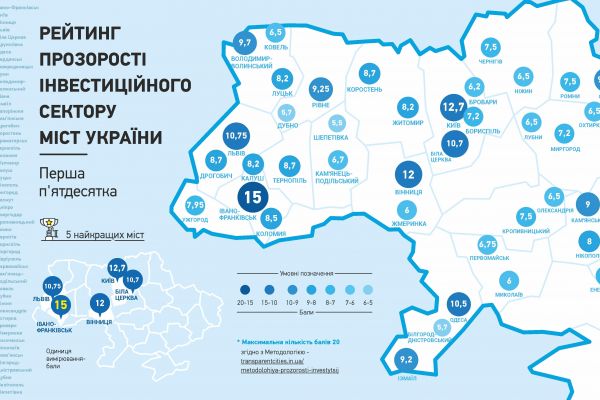 Прозорість інвестиційної сфери 100 найбільших міст України вимірювало Українське представництво міжнародної антикорупційної мережі “Transparency International” у рамках програми “Transparent cities”.
