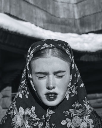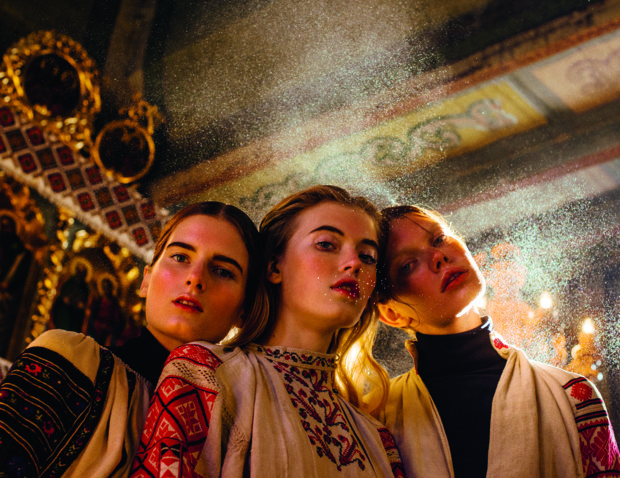 Ця фотозйомка – синтез репортажу, кіно і модної історії. Автори фотосесії поєднали традиційні українські вбрання з речами з сезонних колекцій. Зйомка відбувалася на околиці села Белелуя з фільму «Камінний хрест» та біля церкви в селі Криворівня з фільму «Тіні забутих предків».