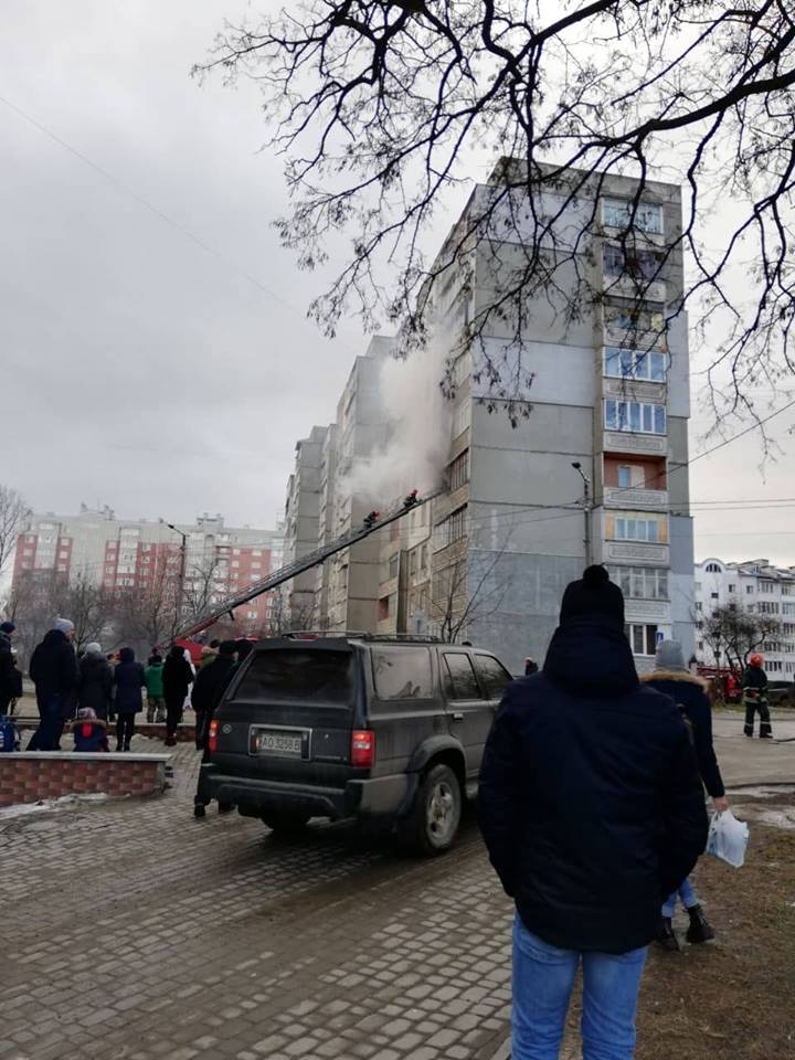 Працюють пожежники. Деталі з’ясовуються, за свідченнями очевидців загорілася квартира на четвертому поверсі.