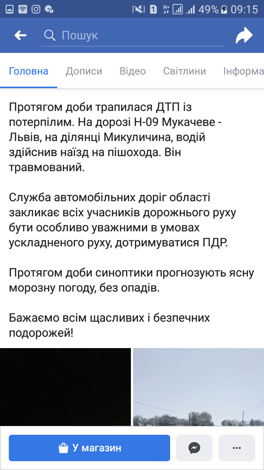 Як зазначено в дописі, На дорозі Н-09 Мукачеве – Львів, на ділянці Микуличина, водій наїхав на пішохода. Він травмований.