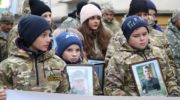 Десятки дорослих та дітей пройшли ходою від Кафедрального Собору Святого Воскресіння до Меморіального скверу. Вони несли в руках фото героїв як пам’ять про ту страшну подію.