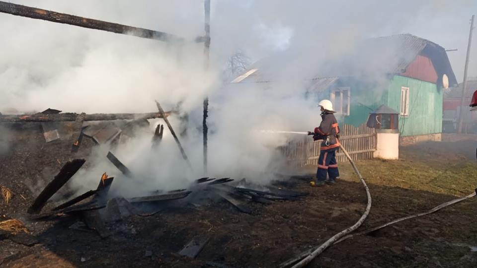 О 14:29 у селі Новоселиця на вулиці Грушевського виникла пожежа господарського комплексу.