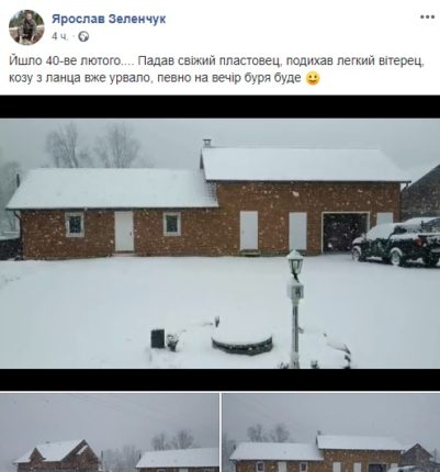 Йшло 40-ве лютого. Падав свіжий пластовец, подихав легкий вітерец, козу з ланца вже урвало, певно на вечір буря буде, – жартівливо прокоментував фото та відео снігопаду Ярослав.