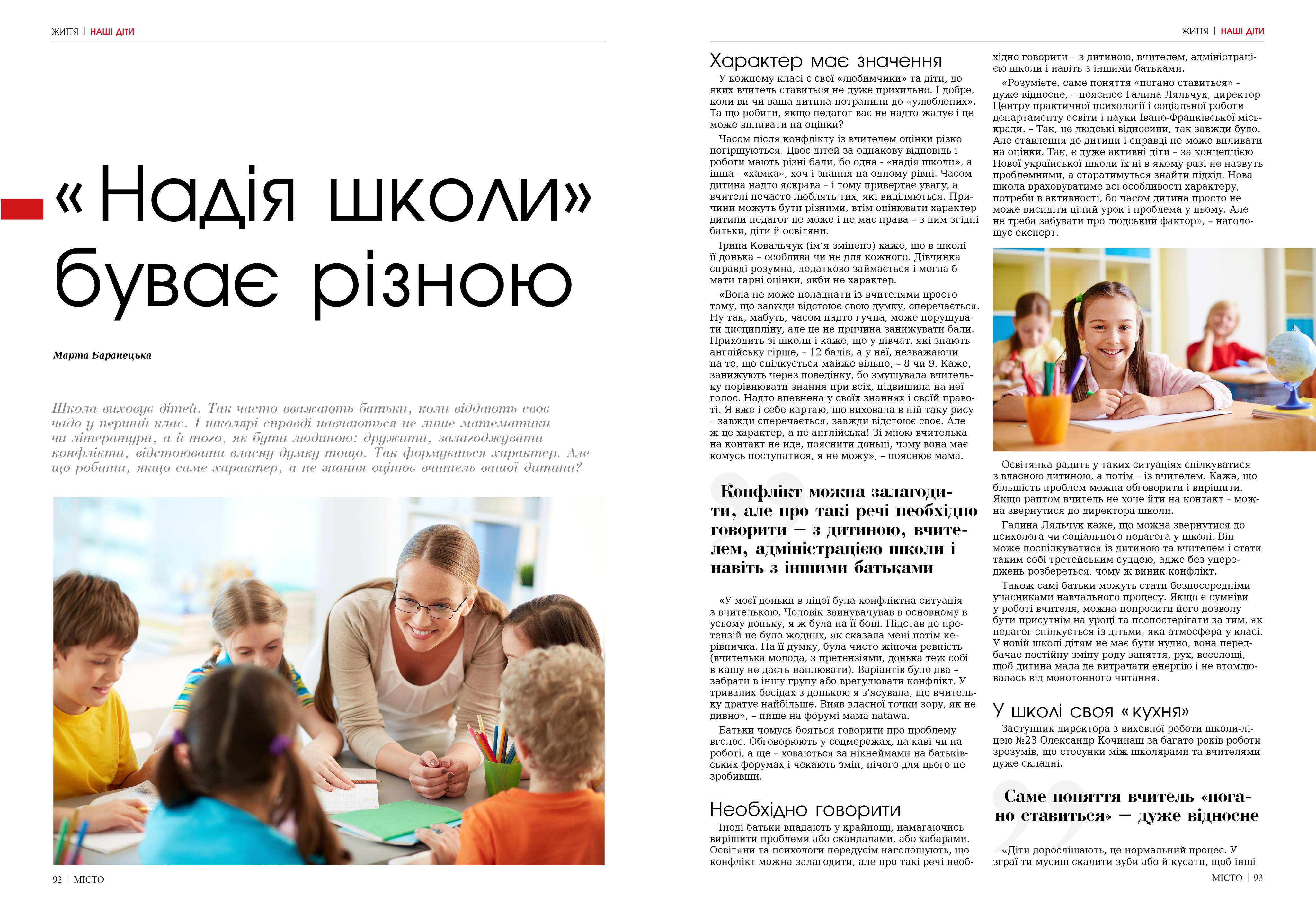 Школа виховує дітей. Так часто вважають батьки, коли віддають своє чадо у перший клас. І школярі справді отримують не лише академічні, але й знання життя. Однак, що робити, якщо вчитель оцінює виключно характер, а не знання вашої дитини? Про проблему зсередини читайте на сторінках нового випуску журналу.