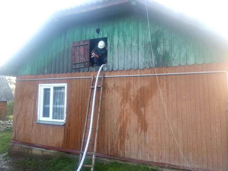 Вогнем пошкоджено дерев’яне перекриття на горищі. Попередня причина виникнення пожежі – коротке замикання електромережі на вводі в будівлю.