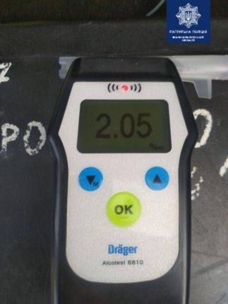 Під час спілкуванння з кермувальником, інспектори помітили у нього явні ознаки алкогольного сп’яніння та запропонували йому пройти огляд на стан сп’яніння. Результат виявився позитивним 2.05 проміле.