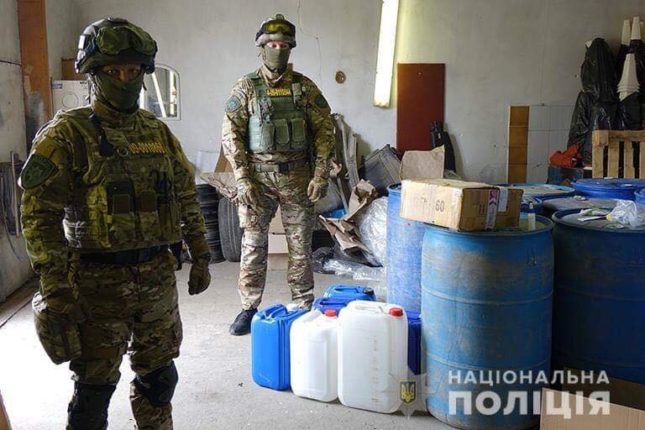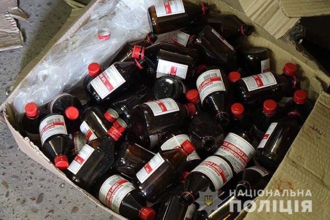 В ході розслідування правоохоронцями вилучено дві полімерні ємкості по 200 л спирту, 127 опечатаних тар (у кожній – по 83-84 флакони), 9 опечатаних тар (у кожній – по 112 скляних флаконів), обладнання для розливу спирту у флакони (електричний насос), укупорювальні кришки, укупорювальний апарат, етикетки, паперові заготовки, а також готовий фальсифікований лікарський засіб – спирт етиловий у кількості 9 750 флаконів.