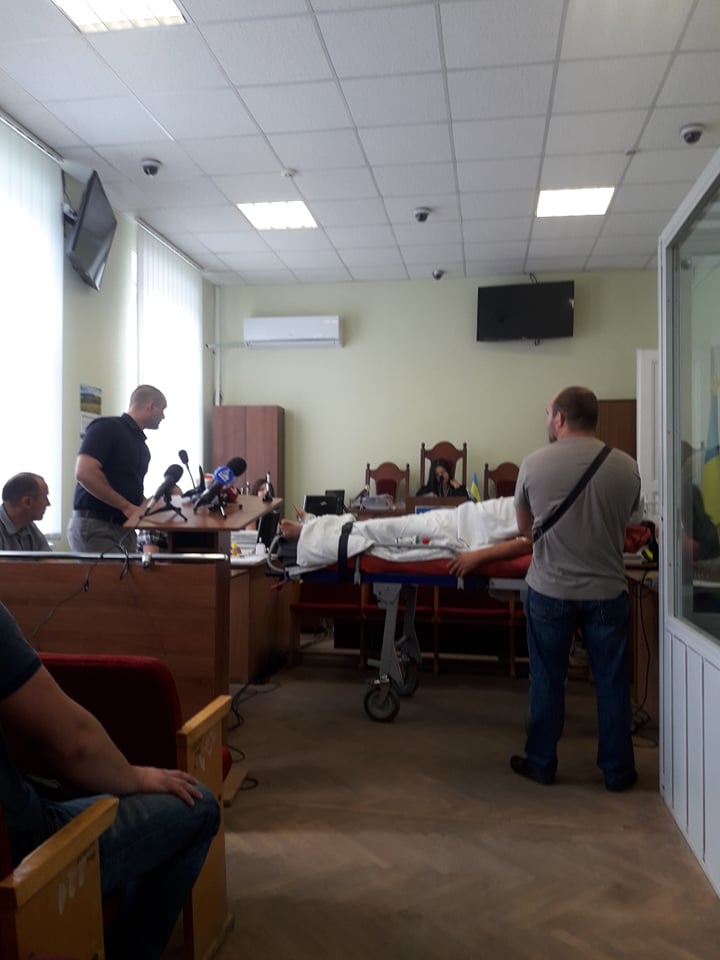 Підозрюваного доставили у суд із запізненням у 2 години, оскільки у лікарні консиліум вирішував, чи може він брати участь у судовому засіданні по стану здоров’я. В суд його привезли на каталці.