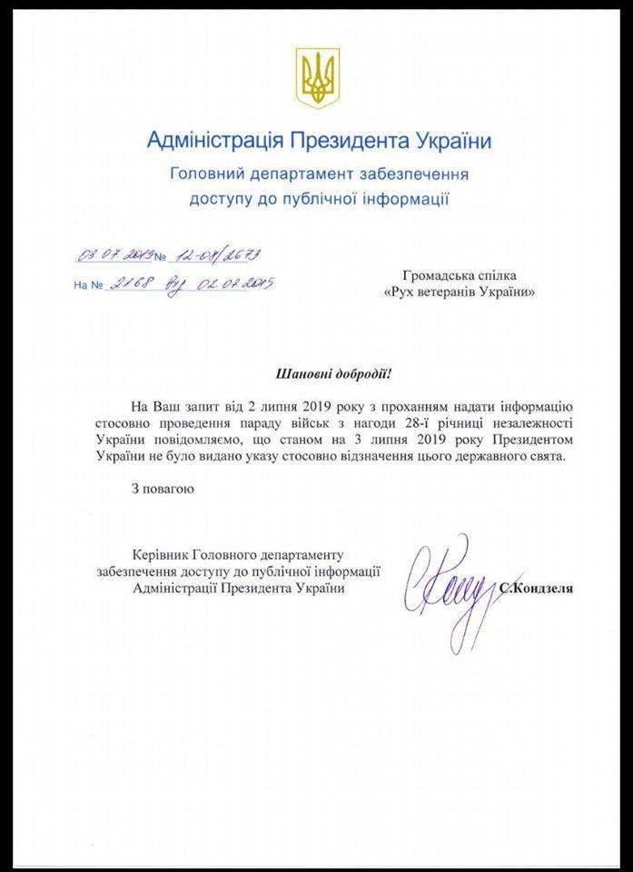 Станом на зараз вже є офіційна заява очільника держави щодо зміни формату святкування найважливішого свята країни, яким параду військ не передбачено.