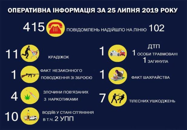 Так минулої доби було скоїли 11 крадіжку, 4 злочини, пов’язаний із незаконним обігом наркотиків та 1 факт шахрайства.