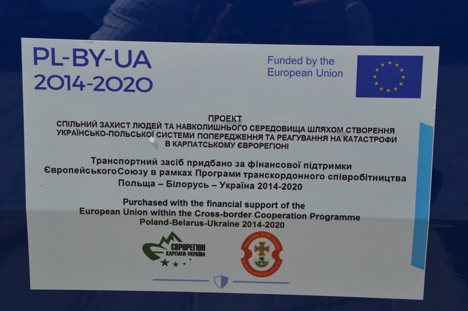 Придбання відбулось в рамках проекту “Спільний захист людей та навколишнього середовища шляхом створення українсько-польської системи попередження та реагування на катастрофи в Карпатському Єврорегіоні” #SECINCARP, що реалізується ЄВРОРЕГІОН “КАРПАТИ – УКРАЇНА”.