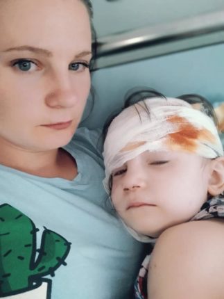 Вчора, 28 липня, близько 14.00 на дитячому майданчику що на вул Тихого 1. Мужчина гойдалкою вдарив мою донечку. Дитина зараз знаходиться в реанімації, – пише жінка, додаючи світлини.