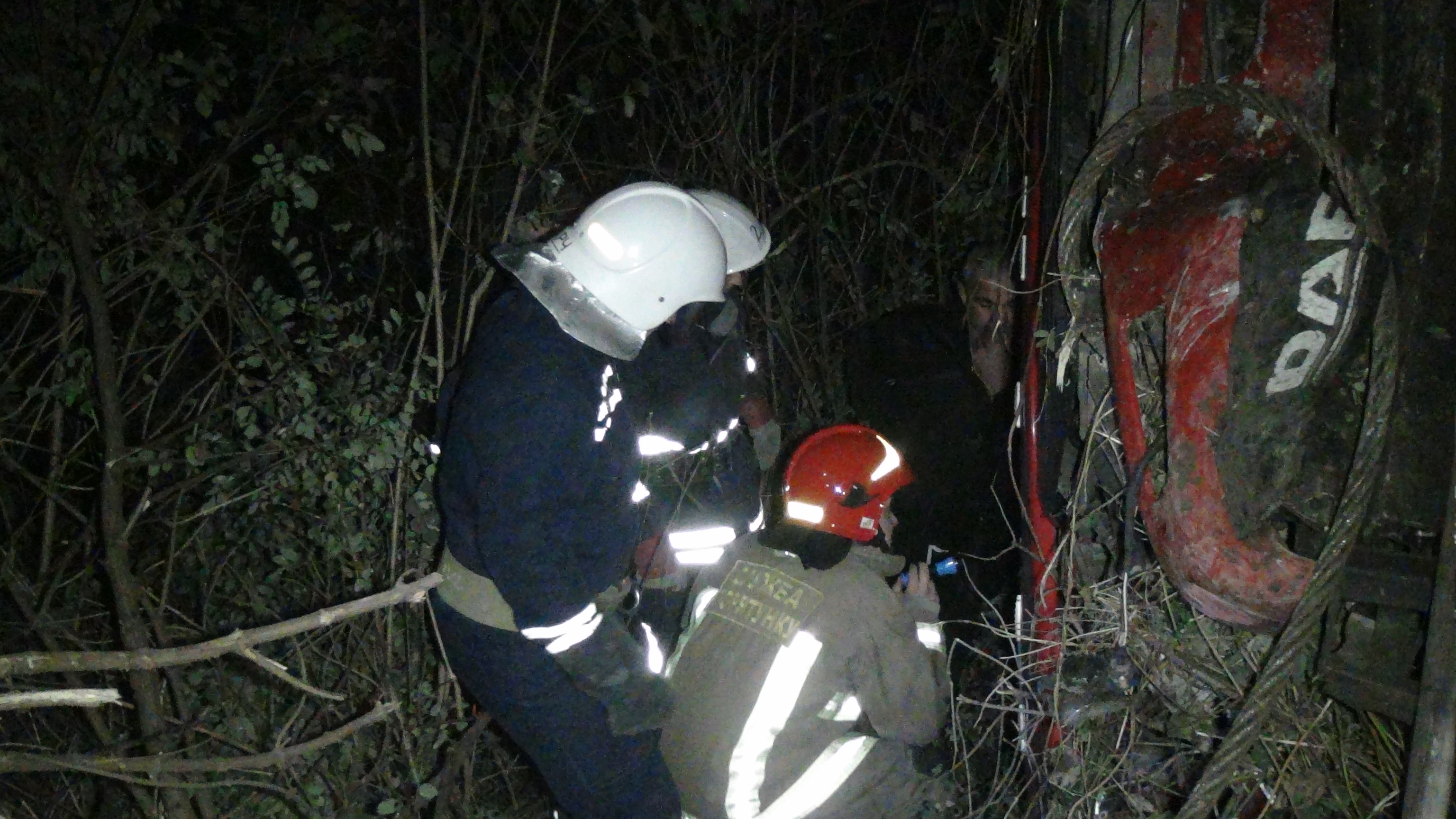 На місце пригоди  викликали рятувальників. Вони деблокували водія з конструкції кабіни вантажного автомобіля. Водія госпіталізували.