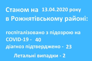 Саном на сьогодні, 13 квітня, діагноз підтвердили у 23 пацієнтів, 40 госпіталізовано з підозрою.