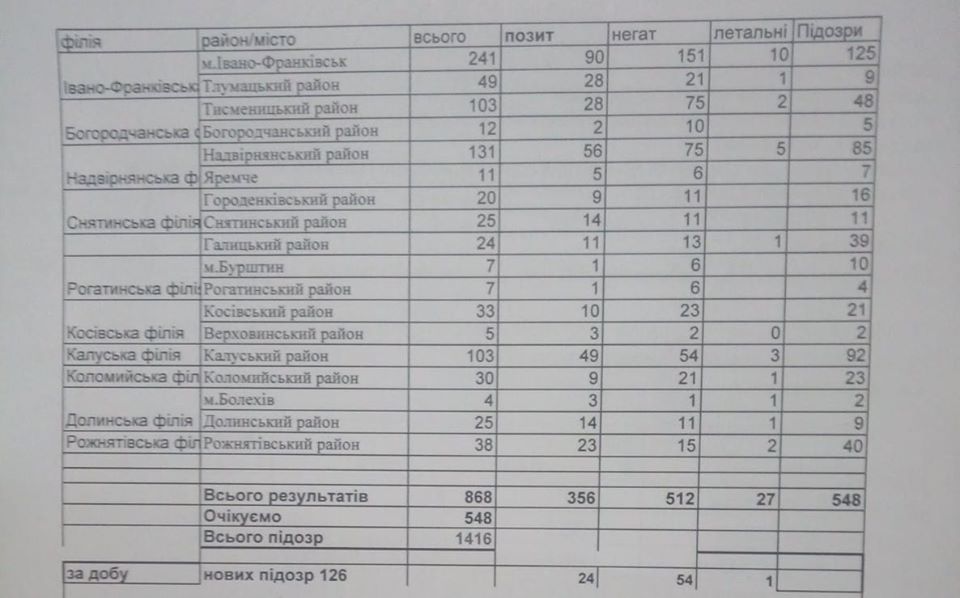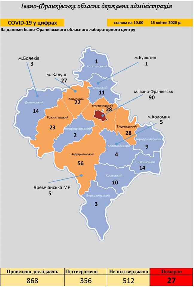 У лідерах Івано-Франківськ – тут 90 хворих, Надвірнянський район – 56, у Тисменицькому та Тлумацькому по 28 хворих.