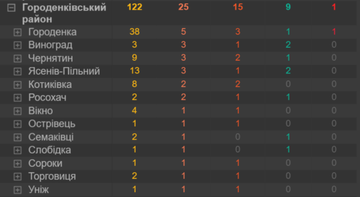 Городенка –  38 підозр, 5 хворих, 1 одужав, 1 помер;