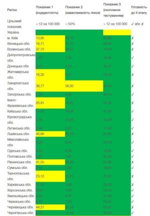 В Україні станом на 20 червня до ослаблення карантину не готові Київ і ще дев’ять областей. Всі ці регіони перевищують показник інцидентності захворювання коронавірусом, а Закарпатська область не відповідає відразу двом критеріям.