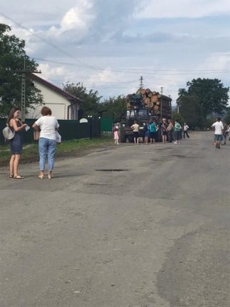 Люди обурені, що лісовози їдуть цим маршрутом вже багато років і постійно розбивають дорогу. Зараз дорога знаходиться в аварійному стані і людей кожного дня годують обіцянками про її ремонт, який ніяк не можуть почати. Саме тому мешканці села вирішили піти на радикальні методи.