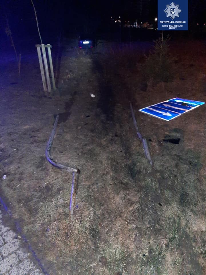 У Франківську п’яний водій в’їхав у бордюр та пошкодив дорожній знак. ФОТО