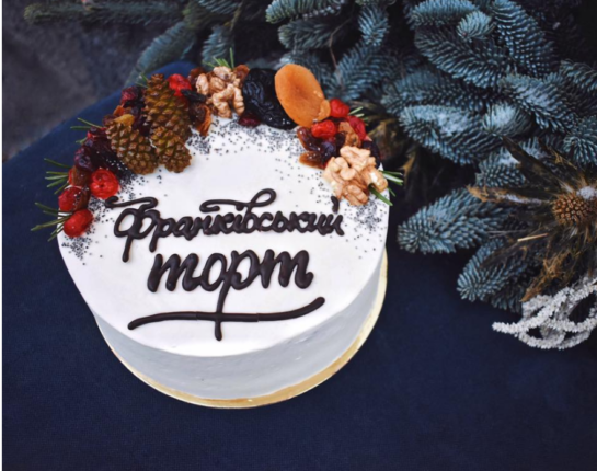 На Прикарпатті відомо тільки про фірмовий “Франківський торт”. На втілення ідеї кондитерам кафе “Delikacia” знадобилося близько 9 місяців. До складу торта входять два макові та один хрусткий шоколадно-горіховий бісквітні коржі, які змащують вершково-шоколадним кремом.