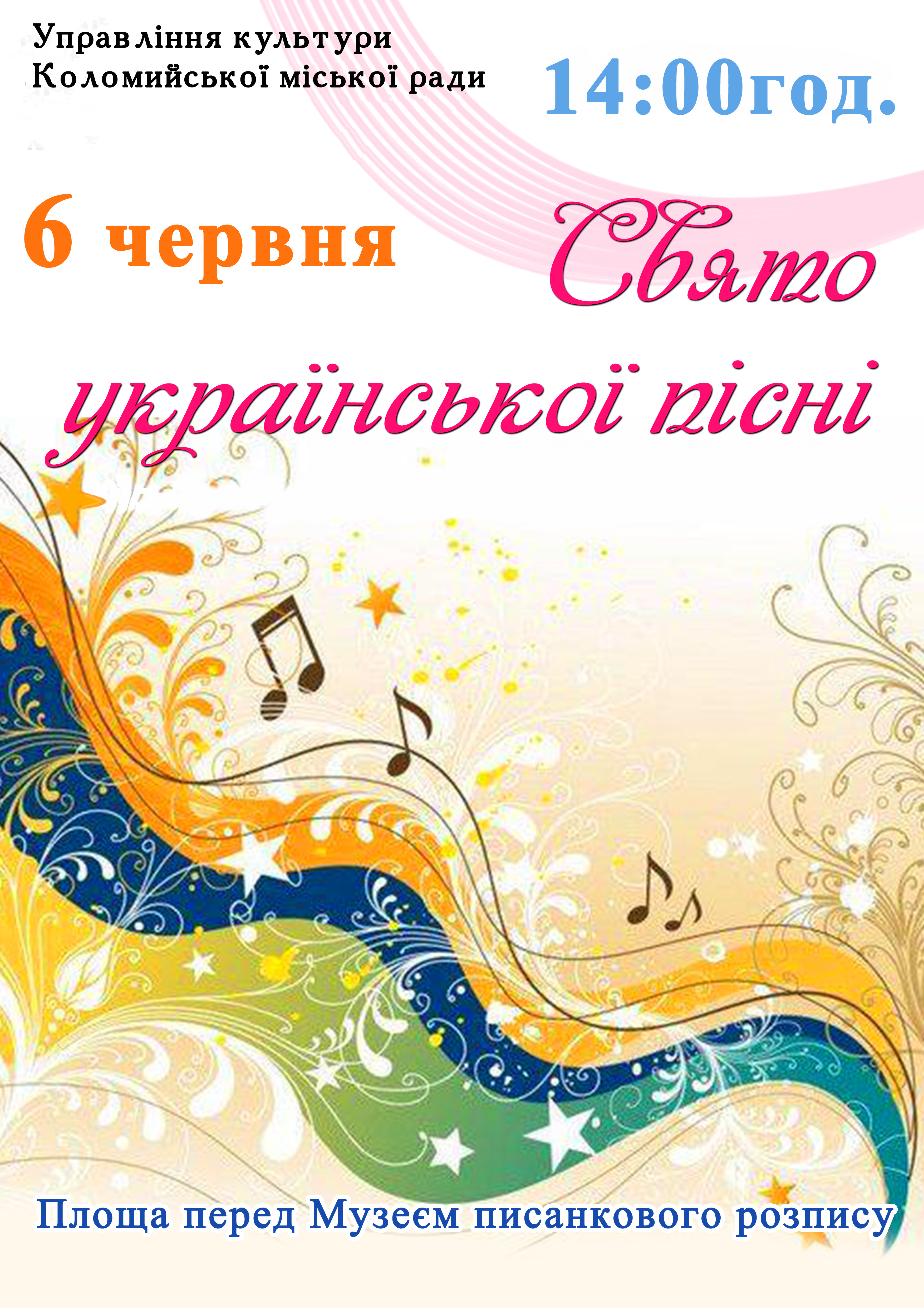 Управління культури Коломийської міської ради запрошує коломиян та гостей міста на Свято української пісні.