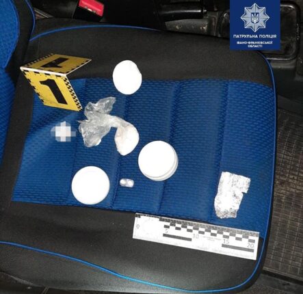 В автомобілі, окрім водія, перебував 43-річний пасажир, який поводив себе підозріло та уникав розмови з інспекторами.Під час поверхневої перевірки, відповідно до статті 34 Закону України “Про Національну поліцію”, патрульні виявили в пасажира згорток з речовиною зеленого кольору, ймовірно, наркотичного походження. А в автомобілі — ємність з невідомою порошкоподібною речовиною.