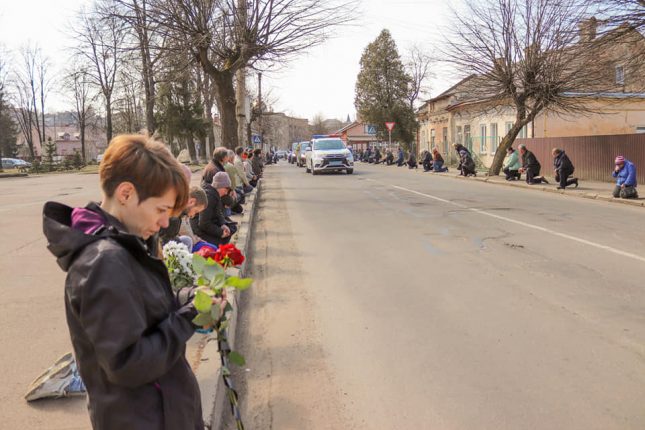 У п’ятницю, 25 березня, траурна колона з тілом загиблого Василя Цюпера вирушила з Калуської ЦРЛ до палацу культури “Мінерал”.
