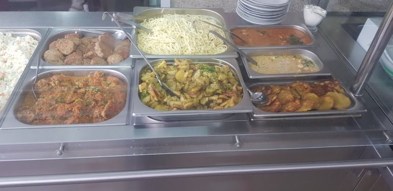 Вибір обідів у соціальній їдальні – вільний, асортимент широкий. За бажанням їжу можна взяти з собою.