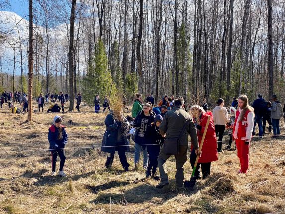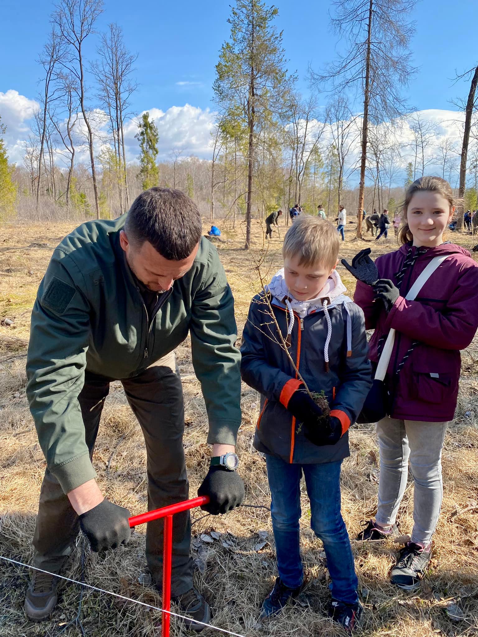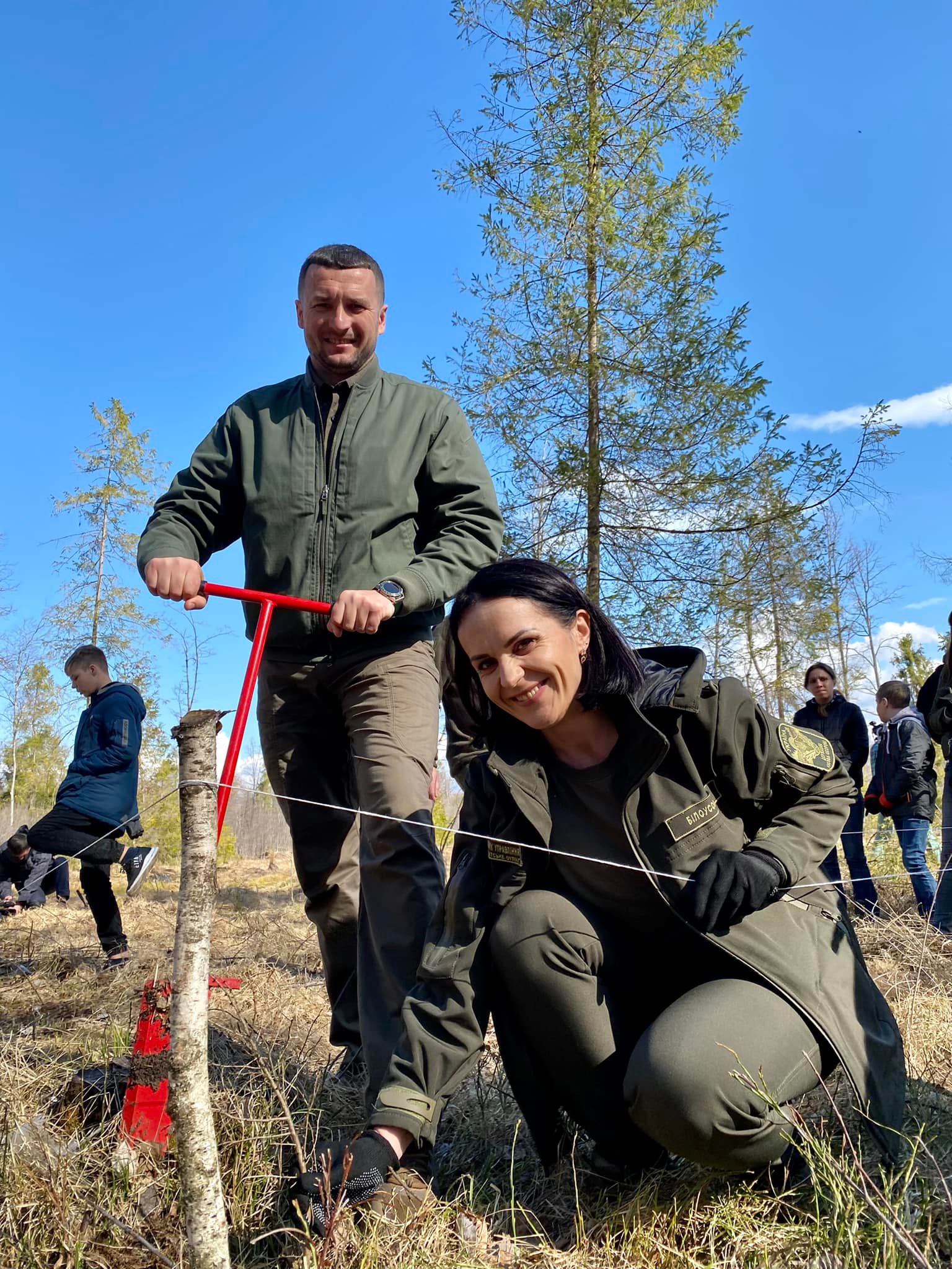 Голова Державного агентства лісових ресурсів України Юрій Болоховець разом із переселенцями із регіонів, де зараз відбуваються бойові дії, висаджує ліс на Франківщині.