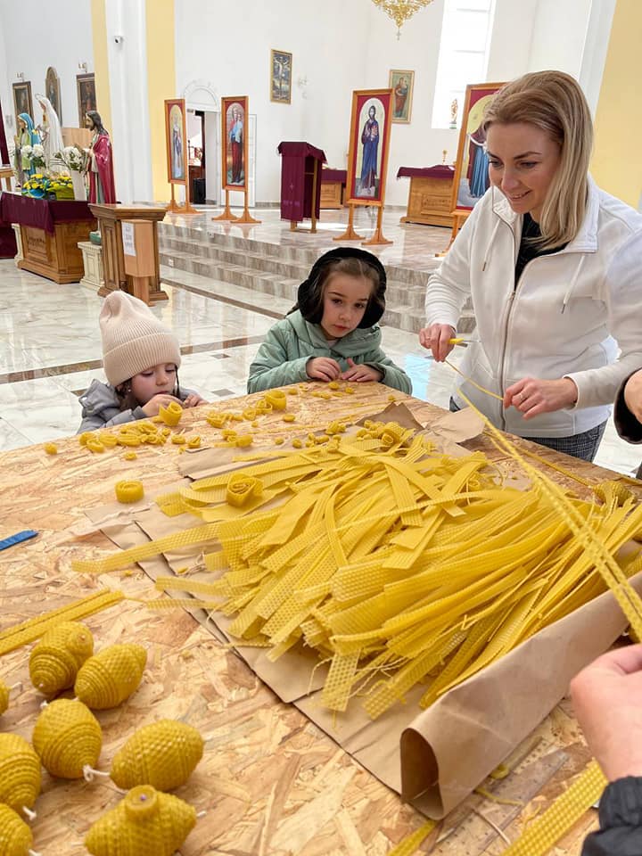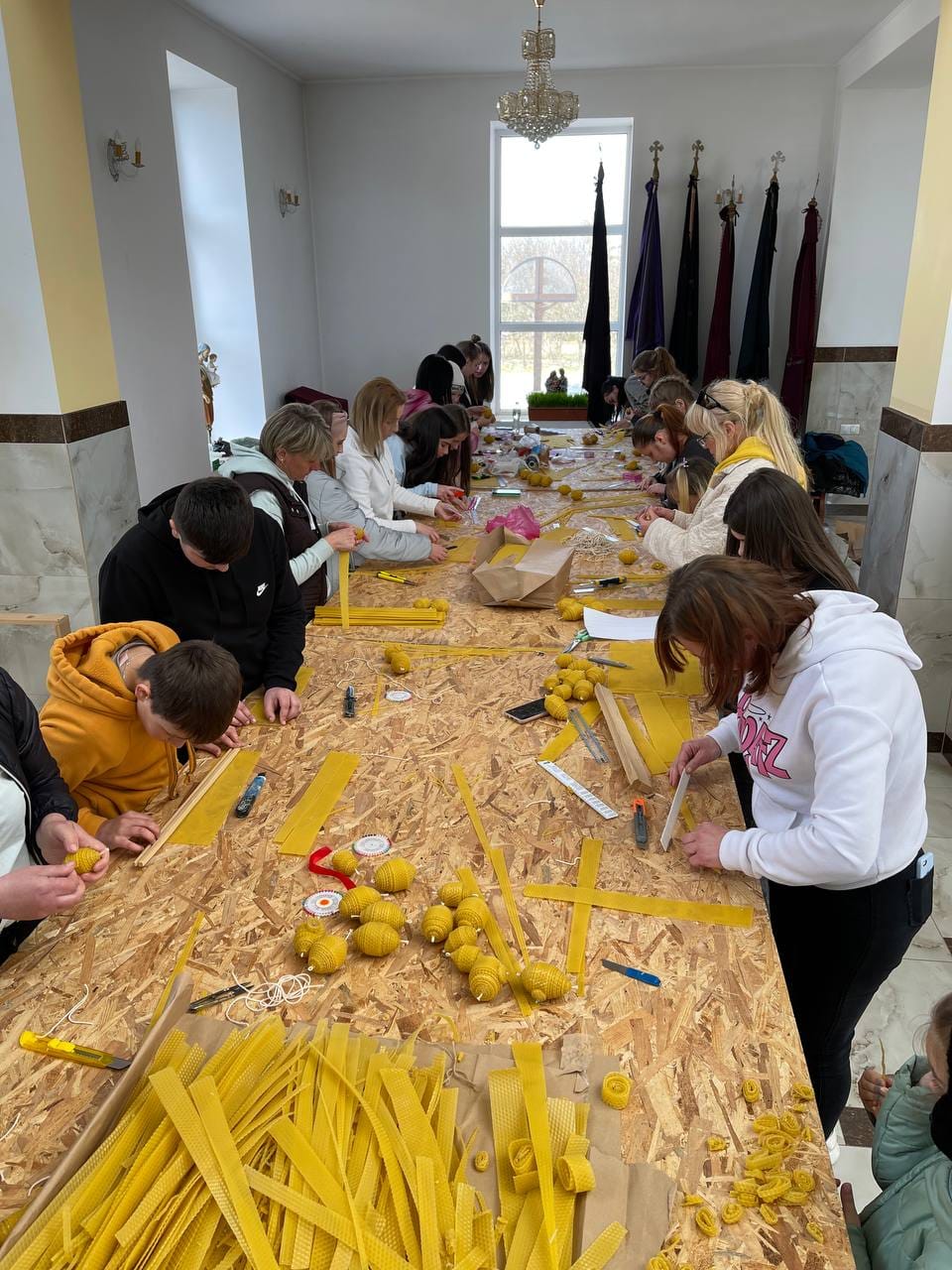 Під керівництвом майстрині Світлани Романів дорослі та діти створювали великодні вироби з натуральної вощини.