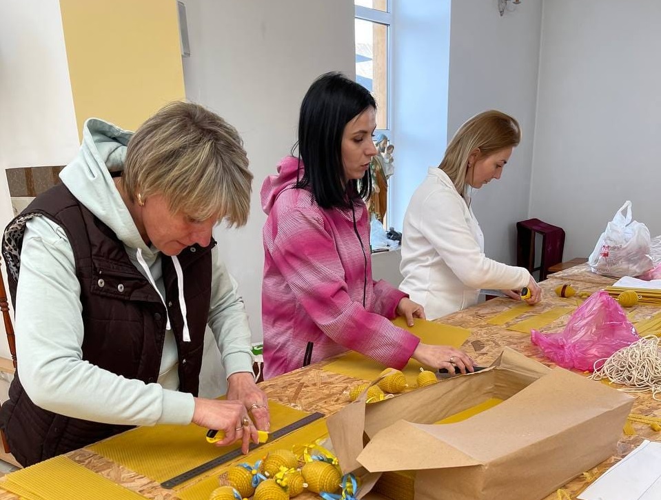 У Голині виготовили 200 свічок-писанок з натуральної вощини, аби допомогти ЗСУ. ФОТО