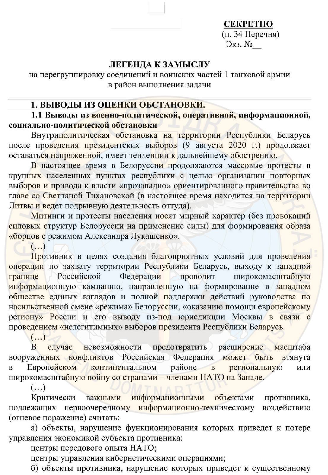 Одним з доказів підготовки рф до військової агресії проти сусідньої держави є “Легенда к замыслу на перегруппировку соединений и воинских частей 1 танковой армии в район выполнения задачи”.